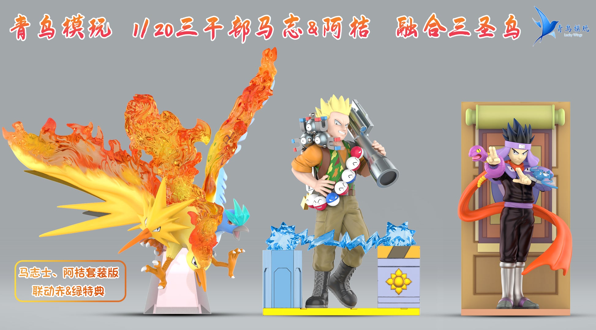 ![[PREORDER CLOSED] 1/20 Scale World Figure [LUCKY WINGS Studio] - Koga / Lt. Surge / Articuno & Zapdos & Moltres in 1](http://pokegalerie.com/cdn/shop/products/571D11D3-CAC6-42F3-8963-9BA4753E339E.jpg?v=1648152185&width=1445)