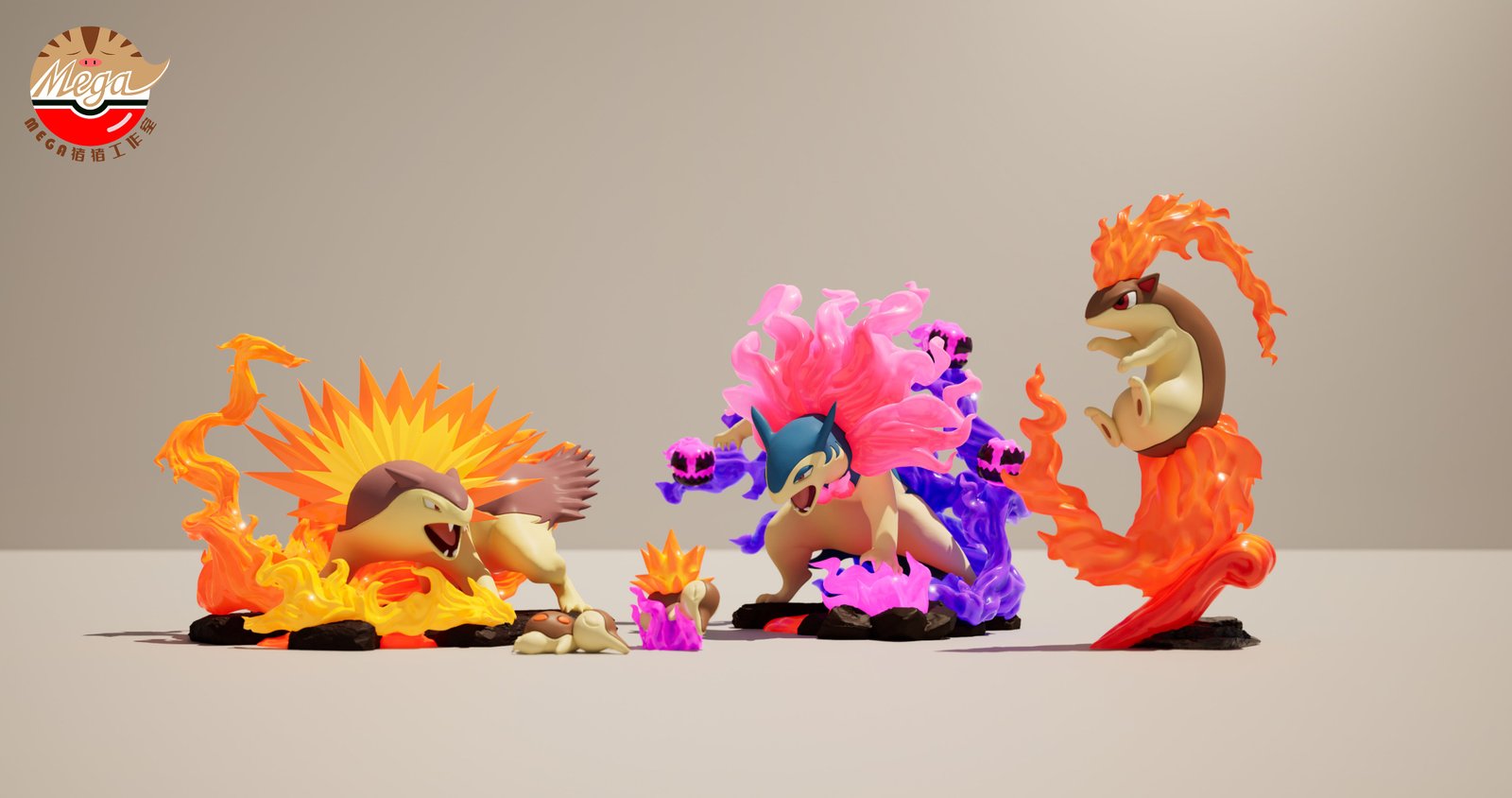 | Figure | Cyndaquil & Quilava & Typhlosion & Hisuian Typhlosion |